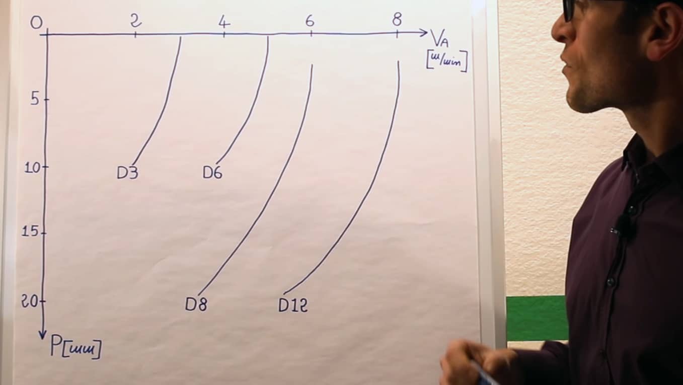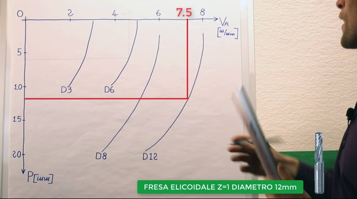 Una volta identificata la curva in base al diametro della tua fresa, dovrai scegliere il valore della profondità di lavoro della passata, in base alle tue necessità.