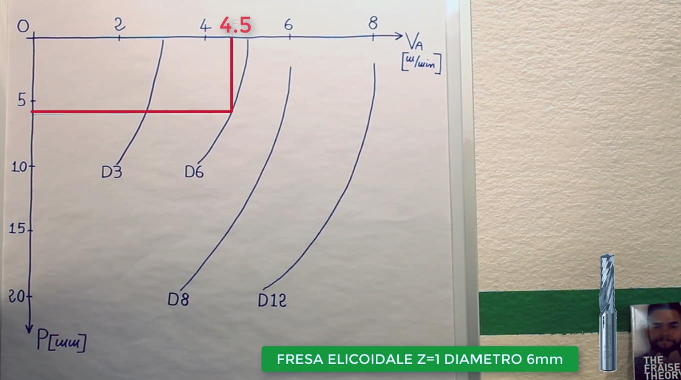 Rispettando le proporzioni, posso concludere che il valore ottimale della velocità di avanzamento è di circa 4,5 metri al minuto.