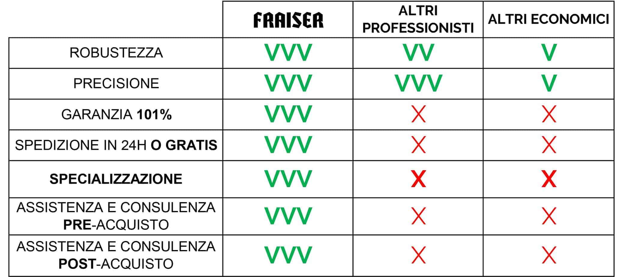 E lo sai cosa significa questo? Lascio alla seguente tabella il compito di evidenziare il perché Fraiser è la soluzione definitiva per trasformare finalmente le tue fresate in quello che hai sempre desiderato!
