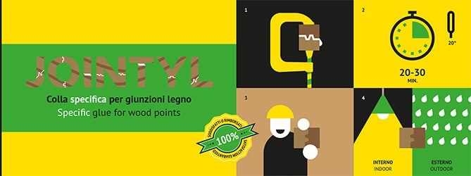 Jointyl è una colla Vinilica per Legno specifica per effettuare giunzioni Robuste e Durature, sia in ambienti interni ed esterni, in modo semplice e sicuro anche se non sei un esperto artigiano.