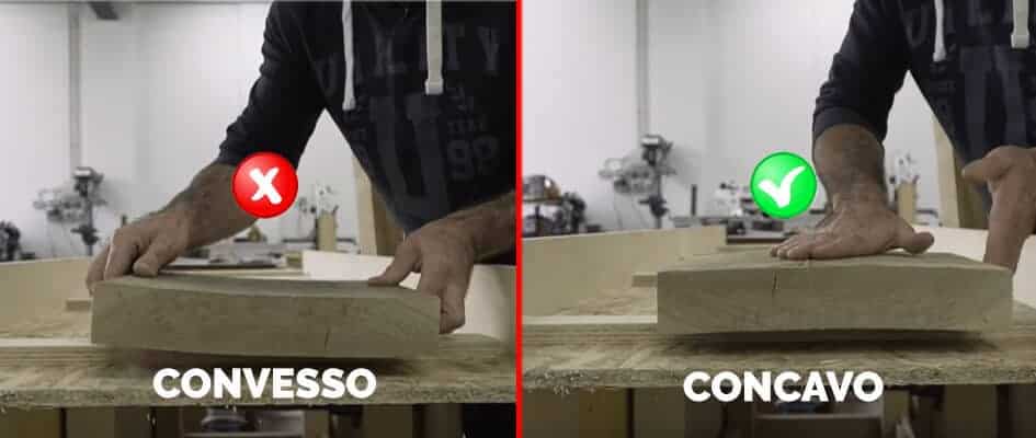 A causa del fenomeno di stagionatura e/o essicazione del legno potresti (quasi sicuramente) trovare la tavola da spianare non perfettamente in piano ed avrà un lato CONCAVO ed uno CONVESSO.