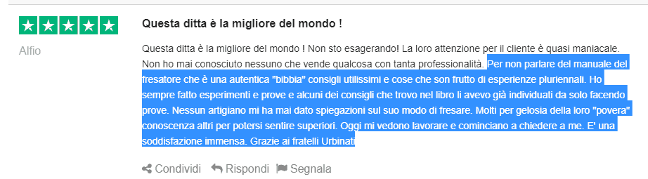 Leggi cosa dice Alfio in una recensione VERIFICATA (al contrario di quelle controllate degli altri siti) sulla nostra “BIBBIA” (è solo una delle centinaia di recensioni che riceviamo ogni mese!)